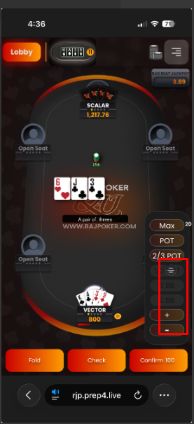 Raise bar and pot selection options are overlapping in IOS portrait view
