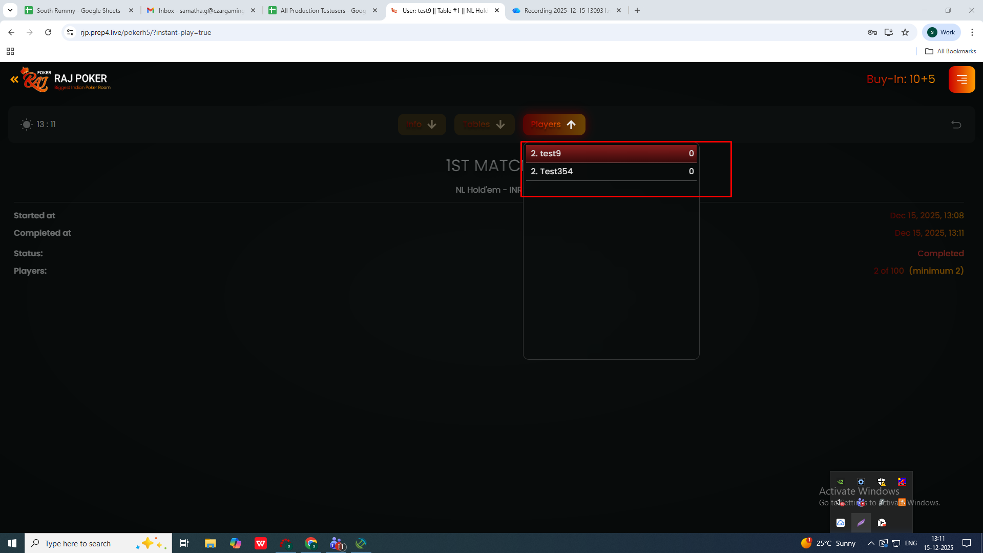 Tournment lobby win position showing wrong (same for two users ),after completing tournament.